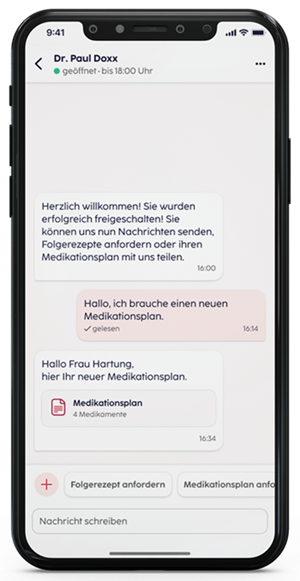 Der Chat erlaubt es uns und Patientinnen und Patienten gleichermaßen, direkt und schnell Nachrichten zu versenden. Diese Funktion kann beispielsweise in folgenden Fällen eingesetzt werden: